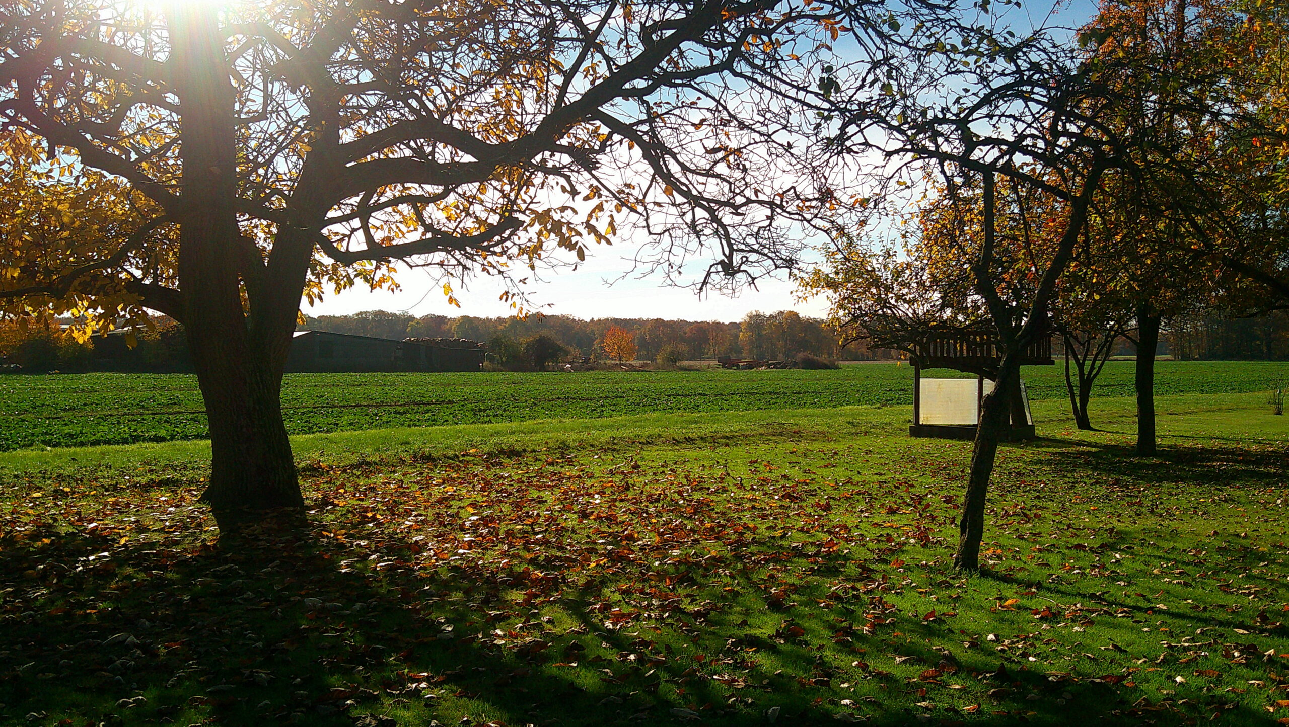 großer Garten mit Fernsicht, alter Baumbestand ( Nussbaum, Apfelbaum, Kirschbaum), Holz-Gartenhaus